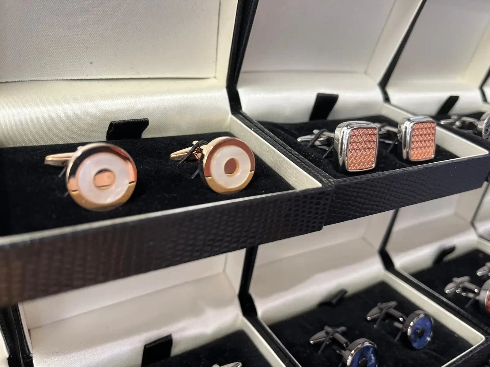 Unsere Manschettenknöpfe werden von erfahrenen Handwerkern mit Liebe zum Detail gefertigt. Jedes Paar wird sorgfältig geprüft, um sicherzustellen, dass sie nicht nur gut aussehen, sondern auch langlebig sind.